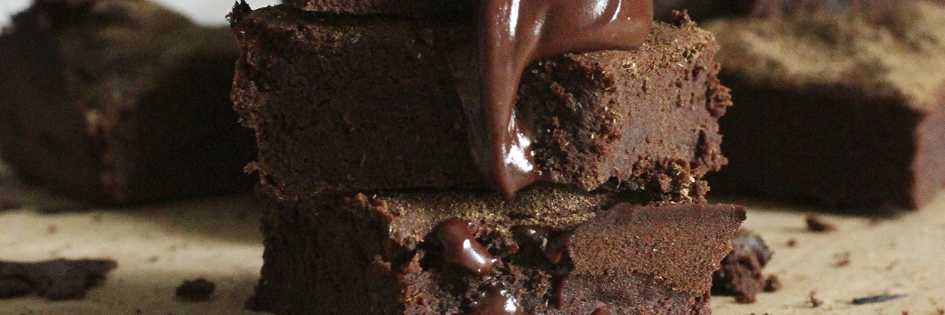 Precalentar el horno a 170ºC y preparar un molde rectangular o cuadrado, engrasándolo bien o cubriéndolo con papel sulfurizado. Derretir el chocolate negro al baño maría o en el microondas, solo si lo controlamos muy bien, para que no se queme. Dejar enfriar un poco.