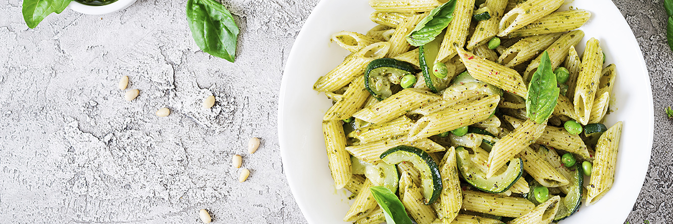 Añadimos a la picadora la albahaca fresca, el ajo sin el germen, los piñones, la sal, la pimienta y el aceite de oliva virgen extra. Picamos todo en golpes cortos, poco a poco
